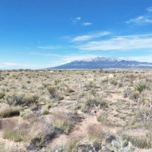 Get away from it all on this vacant lot with mountain views in every direction. Terrain is flat and easy to walk, covered in desert grasses and sagebrush with the Sangre de Cristo Mountains all around.