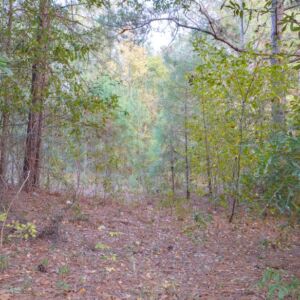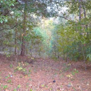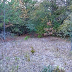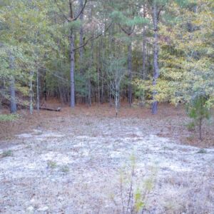 It’s mostly flat with mature pine and hardwood trees, with pine straw and leaf cover across the ground. You’ll need to clear a small area to start building, and the wood you remove can be saved for campfires later on.