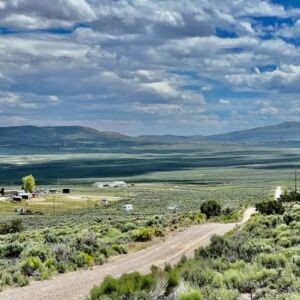 Looking east and southeast, you’ll see the Ruby Mountains stretching across the horizon, still dusted with snow even in warmer months. The view is wide and unblocked, with no buildings or power poles in the way.