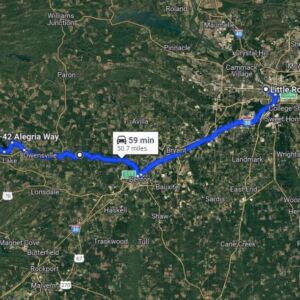 - Conway, AR – 1 h 17 min (72.7 miles)