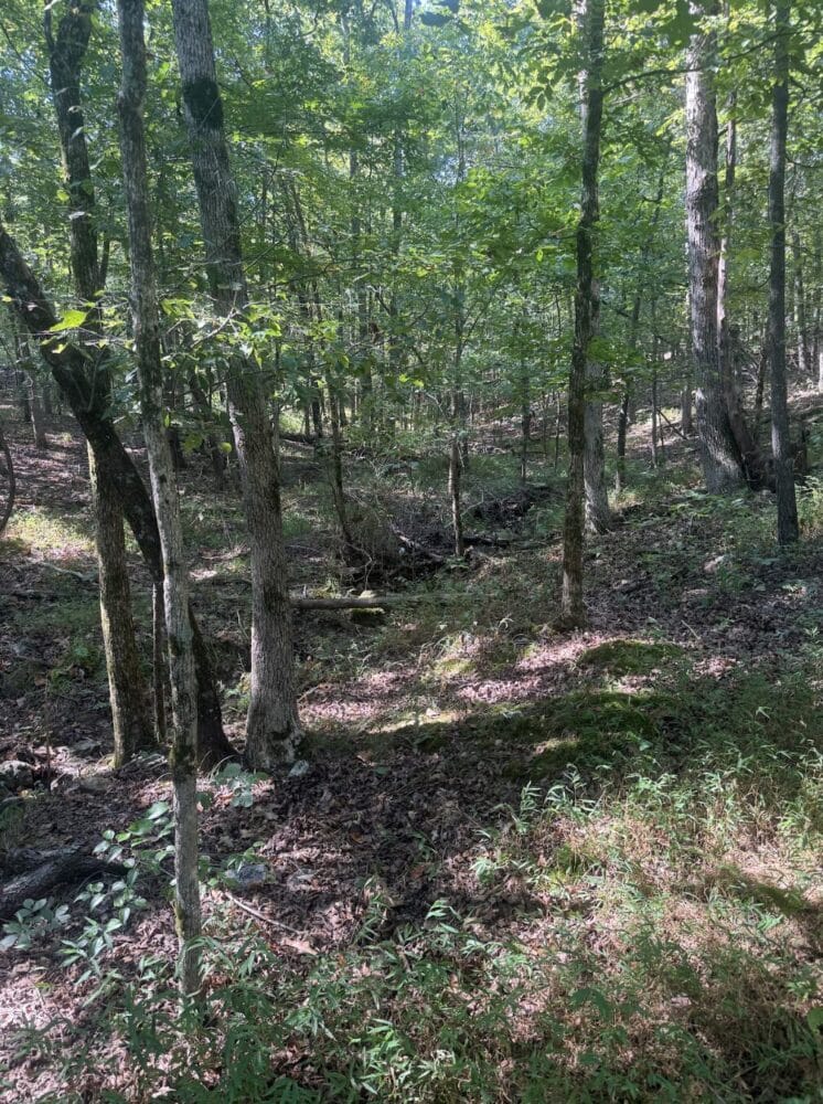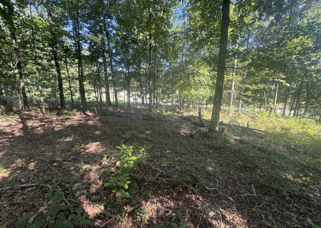 The landscape is heavily wooded but manageable, with a natural slope that offers great potential for scenic builds or elevated views. A small stream cuts through the center, adding a unique feature to the land. It’s perfect for those who value privacy and nature.