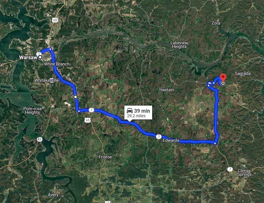 - Jefferson City, MO – 1 h 45 min (85.3 miles)