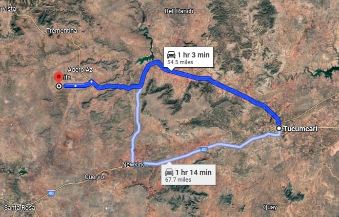 Tucumcari, NM (1hr 3 mins, 54.5 miles)