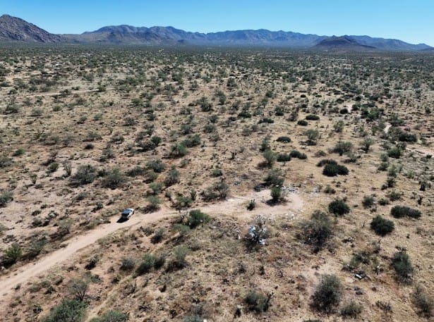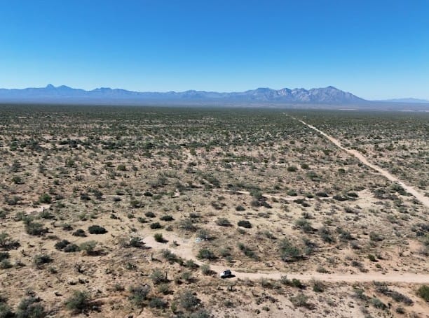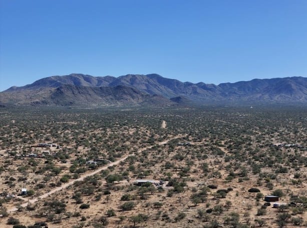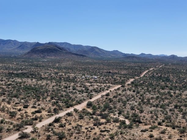 Your 1.22-acre getaway sits in a peaceful part of rural Tucson with natural desert vegetation and steady views of nearby hills and mountain ranges. The area has that quiet Southern Arizona feel, with desert plants all around and a few homes scattered at a distance, mostly toward the north.