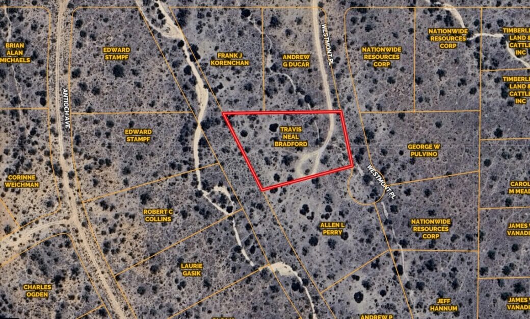 Accessed from S Westmont Pl, a dirt road that runs along the east side of the parcel. The road appears driveable especially for SUVs or trucks. It connects into a small local network of similar dirt routes that eventually tie back into larger roads in the area.