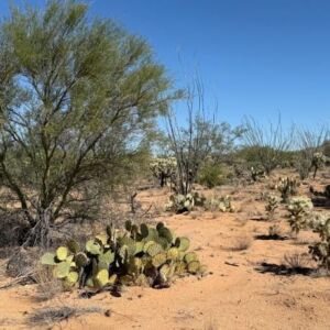 The terrain is mostly level with desert soil. Build your villa-style home, or even a family gathering spot. The ground is a mix of sandy earth with scattered rocks, mature mesquite trees, ocotillo, cholla, and clusters of cactus. It’s natural, scenic, and has plenty of spots where a driveway, courtyard, or small casita could fit in smoothly.