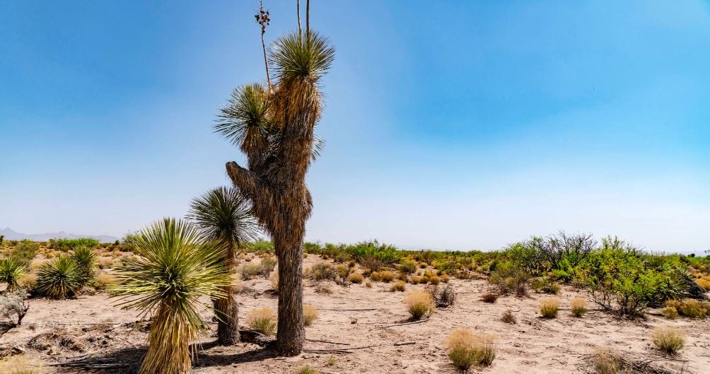 Half-acre property in a quiet desert area of Deming with wide views of the surrounding mountain ranges. Mostly flat with sandy soil, scattered desert brush, and natural plants like yucca and cactus.