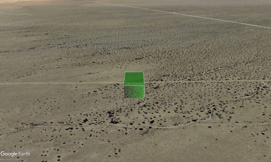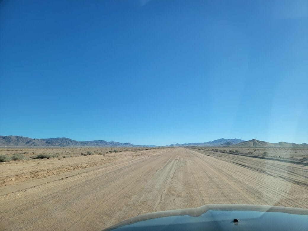 Highway driving on I-40 west was uneventful. I took exit 53 (Andy Devine) and turned onto east 66. After 18 miles, I turned left on Antares Rd and drove another 13 miles and arrived at where Google Maps says to stop. They do not show an actual road at the point of termination, but there is a dirt road to the left that allowed me to continue on and drive to the edge of the property. Google Map Link