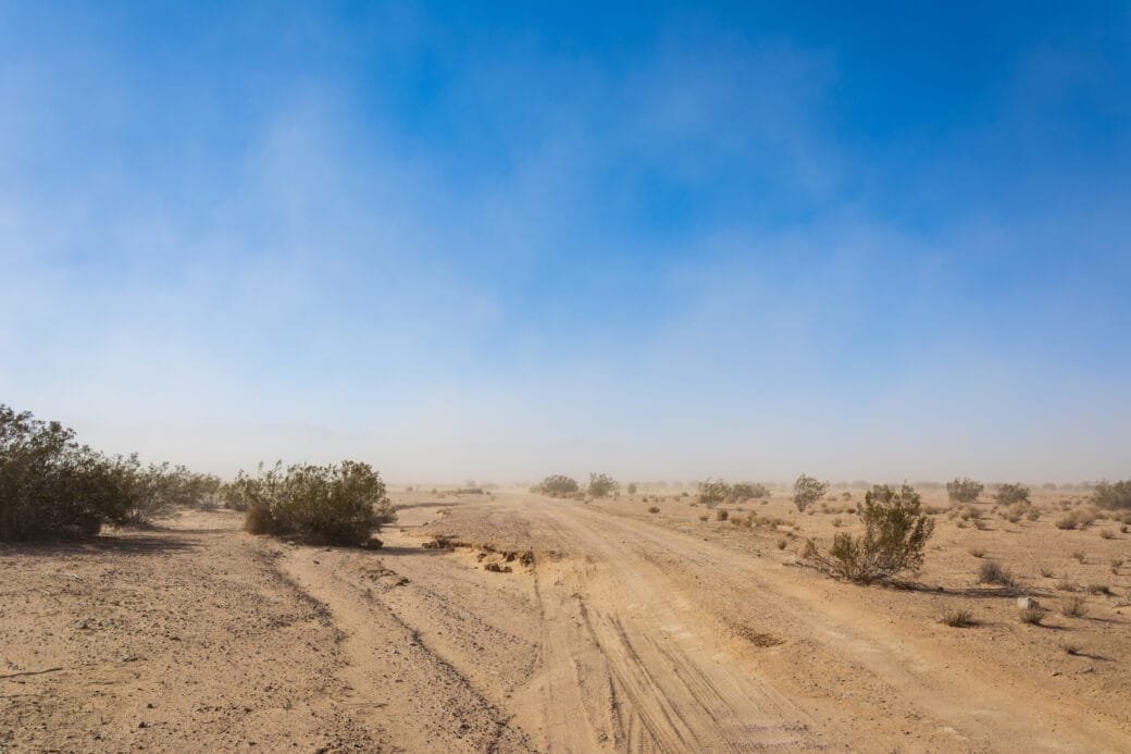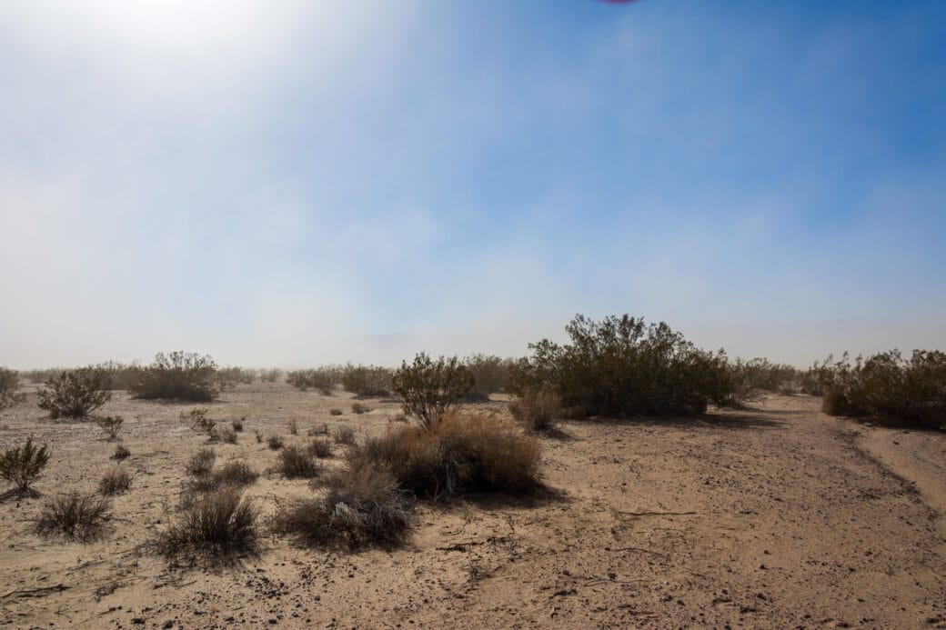 During our photographer site visit, localized dust storms were present right over the property, reducing visibility temporarily. But, skies cleared up within a couple miles—Kingman and the surrounding area had clear blue views to the mountains. It’s something to be aware of, particularly if planning to live or build here.