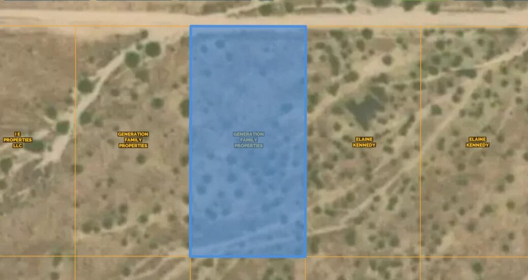 The terrain is dry and sandy, with scattered bushes and some loose rocks. There are no utility hookups on-site so this is a property for those looking to go fully off-grid with solar, water hauling, dig a well, and install a septic. You’ll see scattered development in the area: a mix of rustic shacks, small homes, and some long-term RV dwellings.