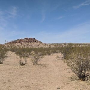 Once you arrive, you’re greeted by quiet surroundings, desert brush, and clear mountain views. The land is mostly flat with some natural underbrush throughout. There are no trees, which means plenty of sunlight great for solar power.