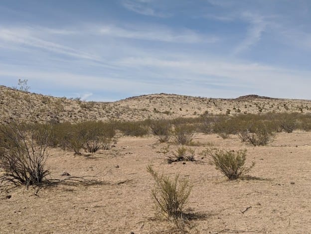 Once you arrive, you’re greeted by quiet surroundings, desert brush, and clear mountain views. The land is mostly flat with some natural underbrush throughout. There are no trees, which means plenty of sunlight great for solar power.
