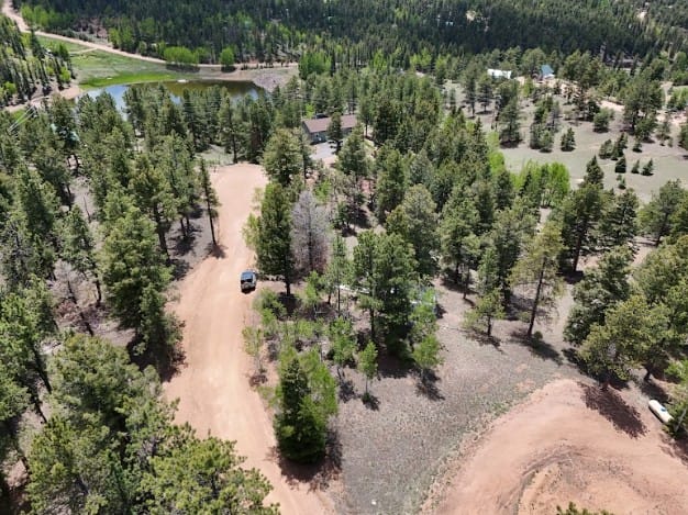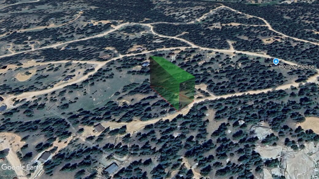 The setting is peaceful, with a mix of part-time and full-time residents. The land sits at approximately 8,700 feet in elevation and is surrounded by trees, wildlife, and views of the nearby hills. From here, it’s about 11 minutes to Florissant and 28 minutes to Woodland Park. Mueller State Park, Eleven Mile Reservoir, and hiking trails through Pike National Forest are all within driving distance.