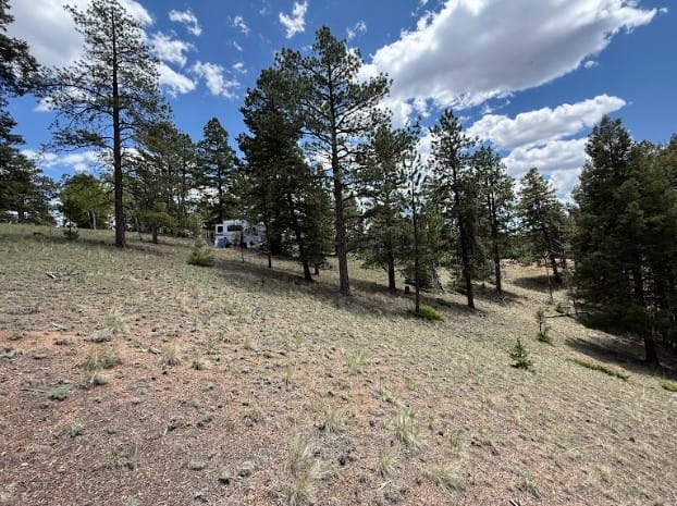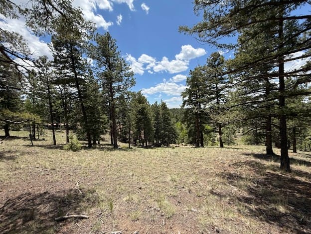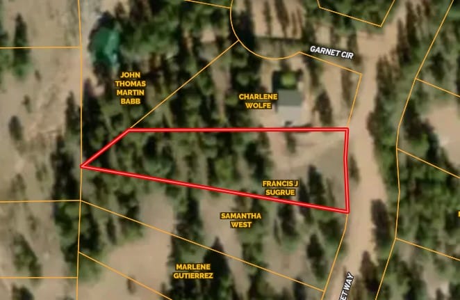 This 0.53-acre parcel on Garnet Way sits in a quiet section of Colorado Mountain Estates. The lot has mature pine trees, a gentle slope, and a natural clearing that supports building. Access is year-round by maintained dirt road. Terrain is well suited for a walk-out foundation, RV pad, or weekend use.
