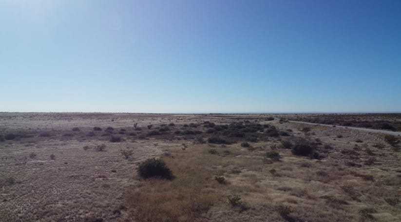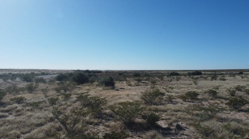 The west side has more desert vegetation, including mesquite bushes and cactus, along with a gentle slope. The slope is mild and does not limit usability, but it does add variation to the land and a more natural desert feel.