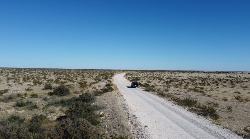 The closest population center is Hope, New Mexico. The area is quiet and isolated, with minimal traffic beyond occasional vehicles using County Road 8.