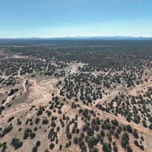 20+ acres in 9445 Texas Ln, Show Low, AZ, 85901 of mostly flat terrain with firm soil and a few sandy patches. Junipers are scattered across the land, with some spots more clustered and others opening into clear, usable areas, especially through the center where a cabin or campsite would fit well. Up close it feels calm and untouched. You’ll notice some old vehicle tracks in a few areas, but the land itself is clean, quiet, and free of debris.
