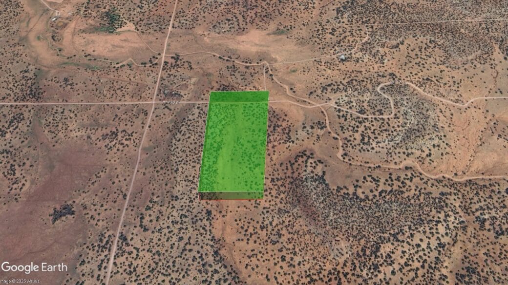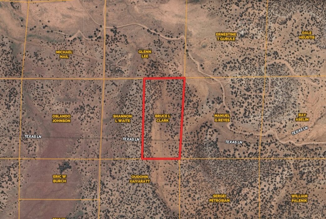 Texas Lane runs along the southern boundary and was described by the photographer as being in good condition for a rural dirt road. You’ll see natural ruts and shallow rain cuts, but nothing unusual for off-grid Arizona acreage. The surrounding roads are fully passable, and there are some vehicle tracks on this parcel as well.