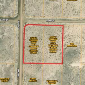 Combined 2.28-acre parcel in a corner along Dawn Drive sits on mostly level land with firm, sandy soil and scattered native vegetation. It’s well suited for clearing a small building area, setting up a small ranch, or placing an off-grid structure. There are no heavy rock outcroppings or steep elevation changes, giving the property a clean, simple layout that’s practical for many uses.