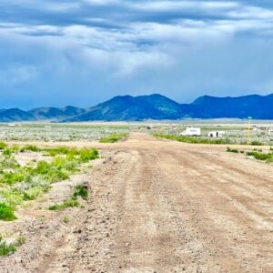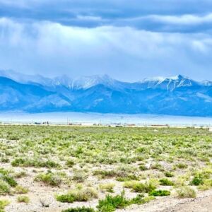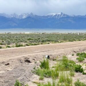 The Sangre de Cristo mountain range lines the horizon, creating a beautiful backdrop from the property and nearby roads. The peaks remain visible from multiple angles, adding depth and character to the landscape throughout the day.