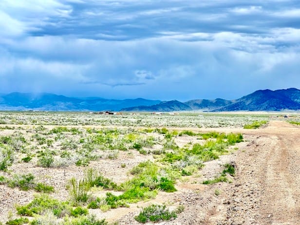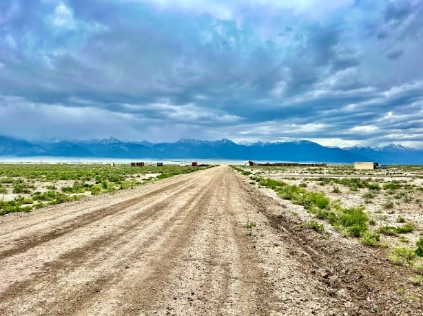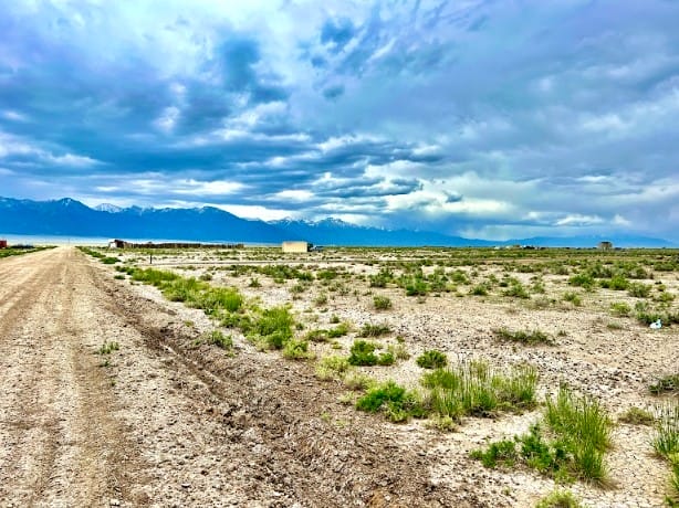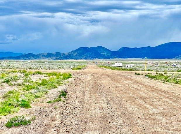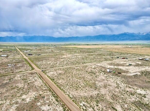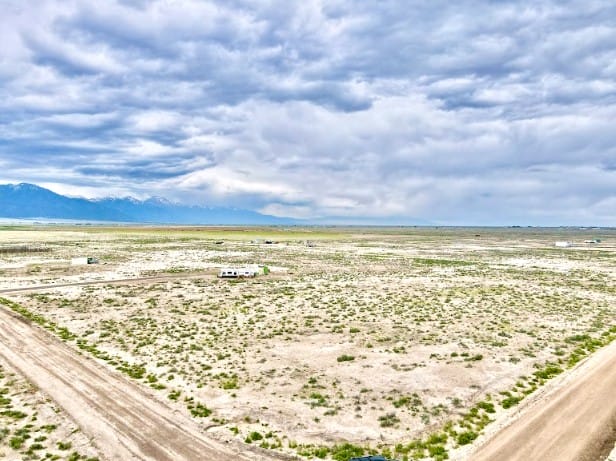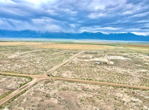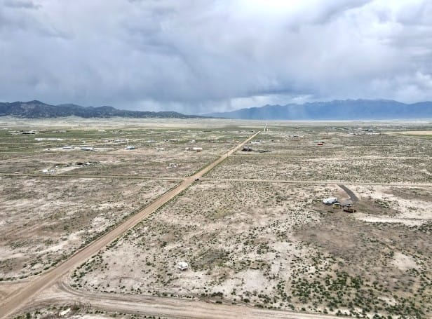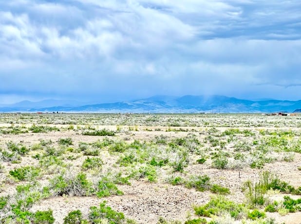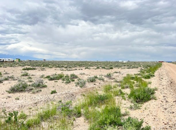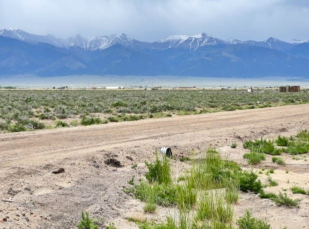 The Sangre de Cristo mountain range lines the horizon, creating a beautiful backdrop from the property and nearby roads. The peaks remain visible from multiple angles, adding depth and character to the landscape throughout the day.