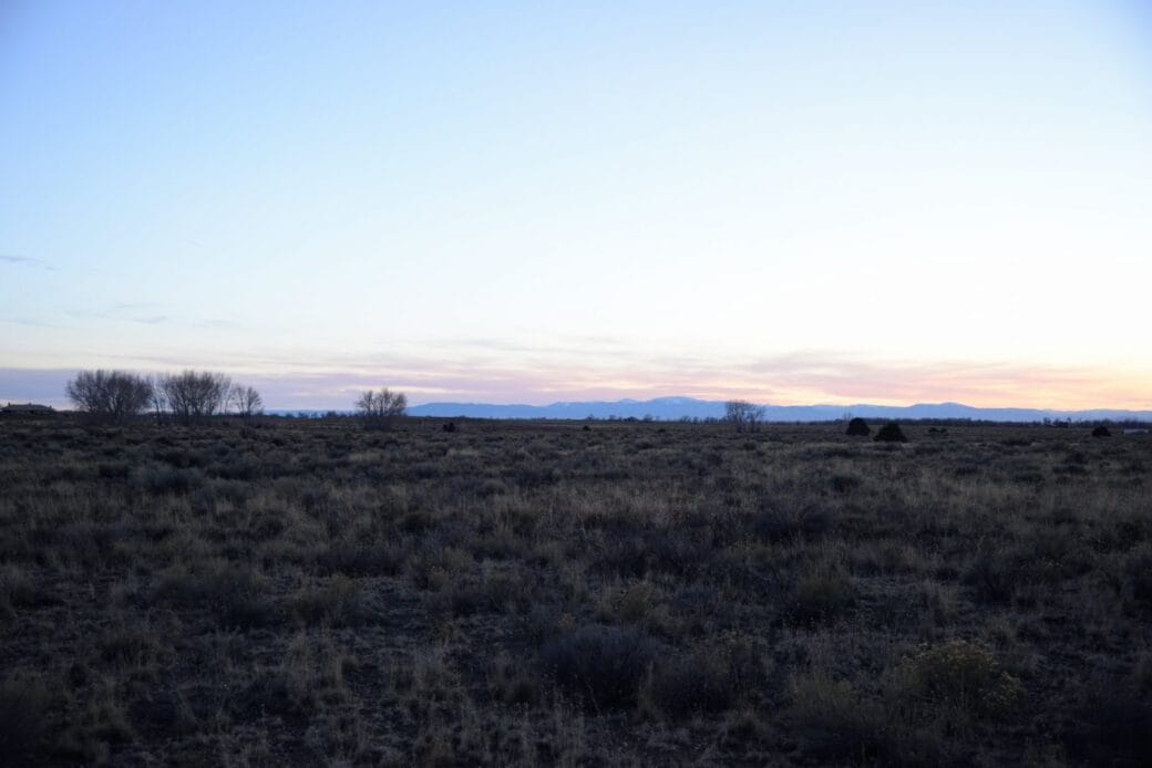 At 1324 W Badger Rd, this 4.43-acre property sits in the wide valley below the Sangre de Cristo Mountains, where snow-capped peaks rise dramatically in the background and sunsets settle softly over the plains.