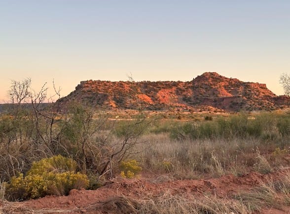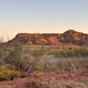 Terrain: Mountain Valley, Flat land, no elevation. Red solid composition of soil and clay. Desert terrain. Open access.