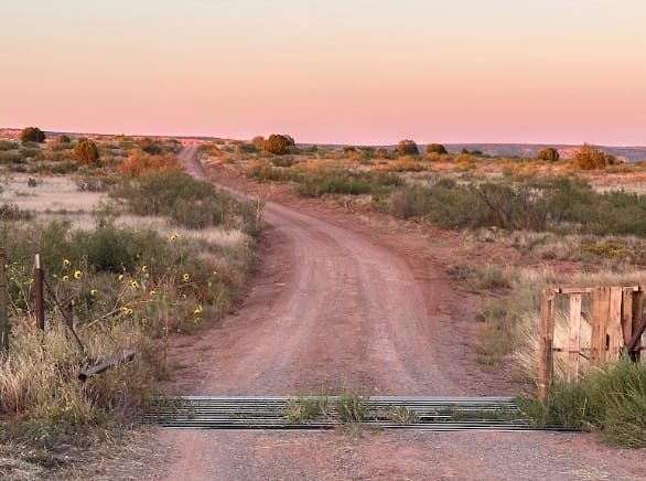 Access is simple and direct from the main road with no easements to worry about. A gated cattle guard marks the entrance, giving you both security and that sense of homecoming every time you drive through. The terrain is flat and firm, made of red New Mexico clay across a wide mountain valley. It’s solid ground that’s easy to build on and beautiful to walk.