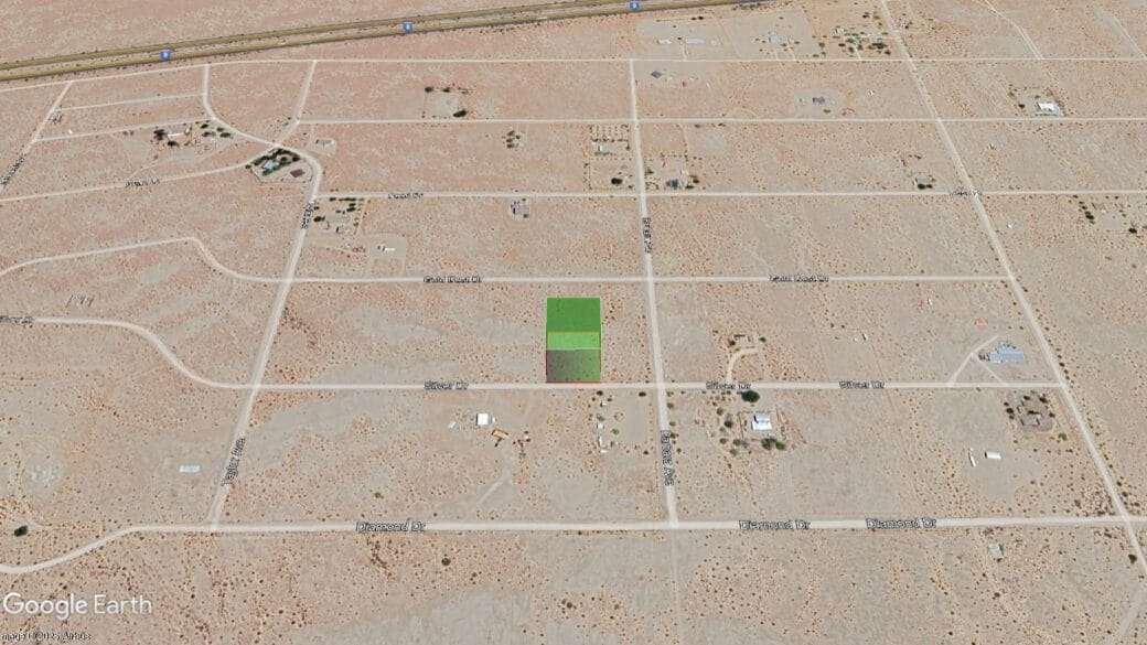 Getting here is simple. Just about 2 miles off maintained gravel roads, you’ll find yourself on Silver Drive, a dirt road lined with a few scattered homes and desert trees. The roads are level and easy to navigate giving you reliable access all year round.