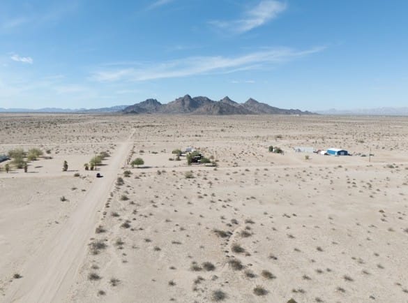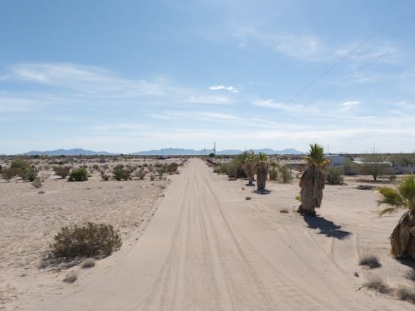 Flat desert land with mountain views in the distance. With essential infrastructure already in place, you can focus on planning your home instead of worrying about setup.