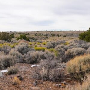 You’ll see the usual high-desert plants like sagebrush, yucca, low shrubs, and native grasses. There are some of natural clearings where you could park, camp, or pick a build spot and clear it out if you want to build your vacation spot.