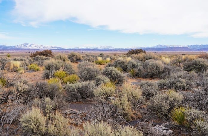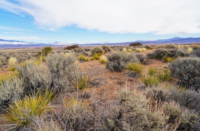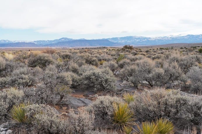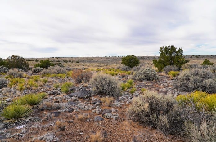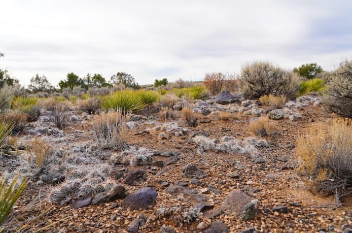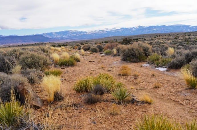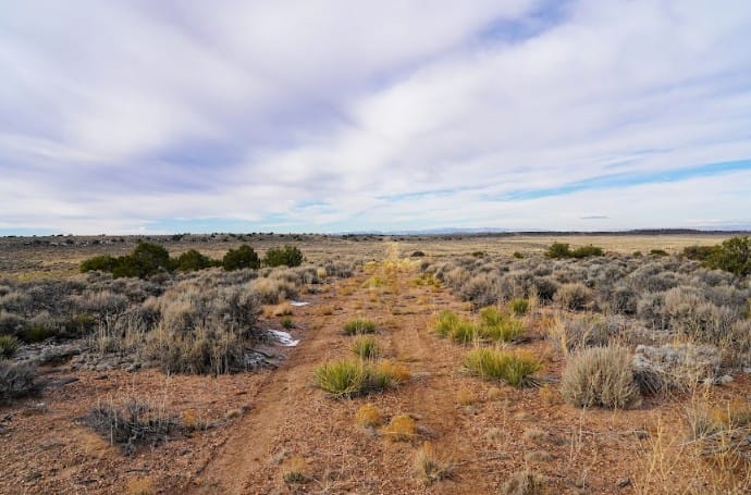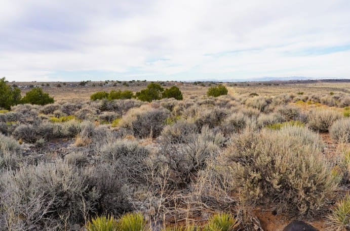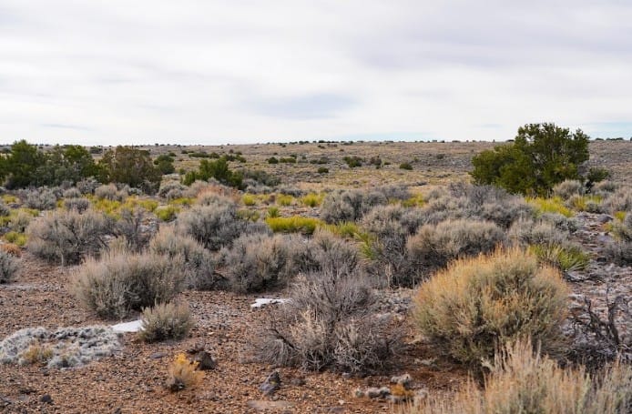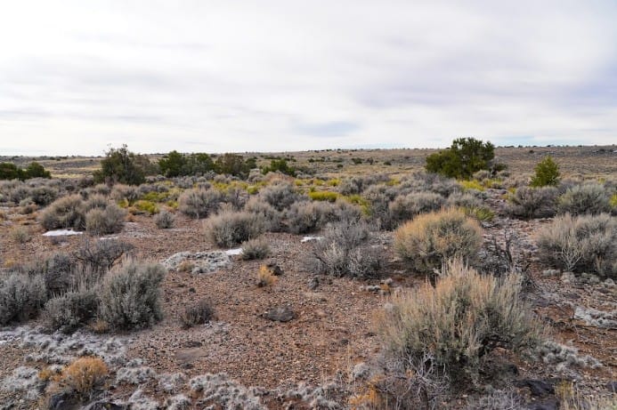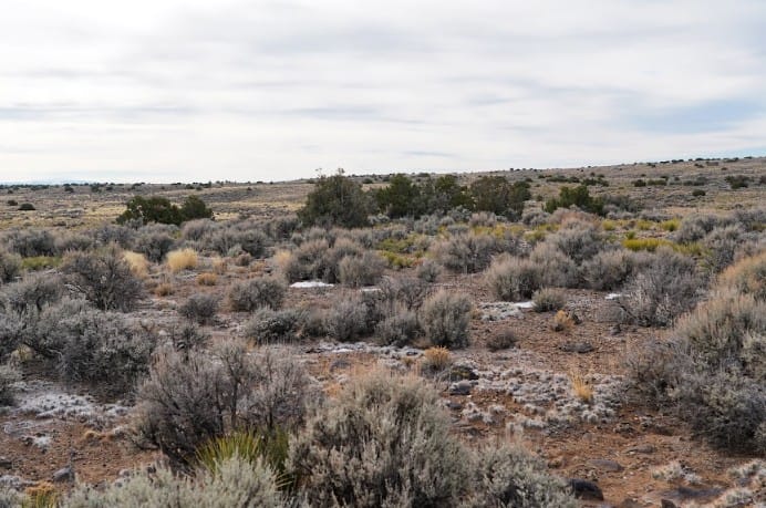 You’ll see the usual high-desert plants like sagebrush, yucca, low shrubs, and native grasses. There are some of natural clearings where you could park, camp, or pick a build spot and clear it out if you want to build your vacation spot.