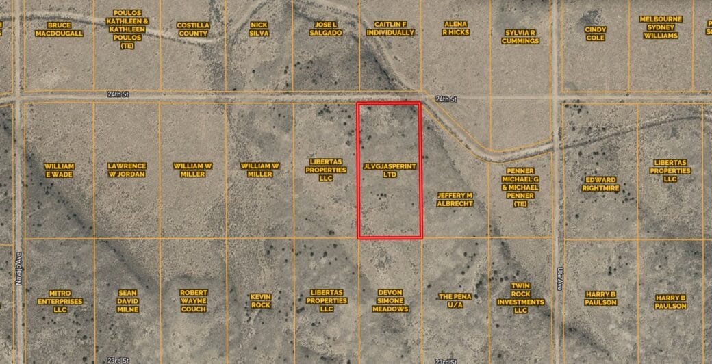 The surrounding area looks just like the parcel itself, natural desert land stretching out toward the mountains in the distance. There’s nothing commercial or industrial nearby, which keeps things quiet and consistent.