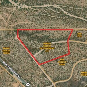 Explore this undeveloped 15.56-acre lot in Florence, Arizona, just a 2-minute drive from Highway 0452 Pinal Pioneer Pkwy. Enjoy flat terrain with tall cacti and breathtaking desert sunsets. A road provides access across the property, with entry through a gate.