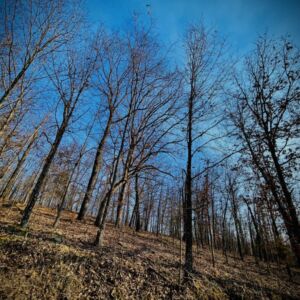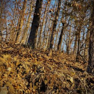Surrounded by oak and hickory trees, this spot offers quiet mornings and beautiful views. The land sits back on a gravel road and has gently sloping terrain. There are clearings that make it easy to set up a cabin or campsite. Wildlife trails run through the property, blending with the natural landscape.