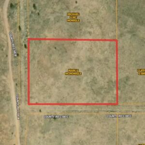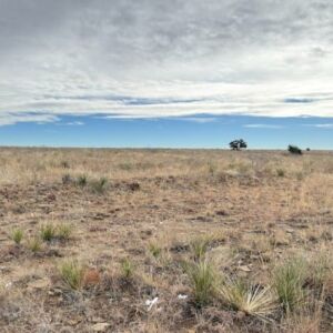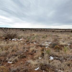 5.07-acre corner lot parcel sits on mostly flat to gently rolling high-desert ground in northeastern New Mexico. The soil feels firm and compact with a mix of sandy earth and small rocks, which is typical for this area. The land is easy to walk and navigate, with no steep slopes or difficult terrain.
