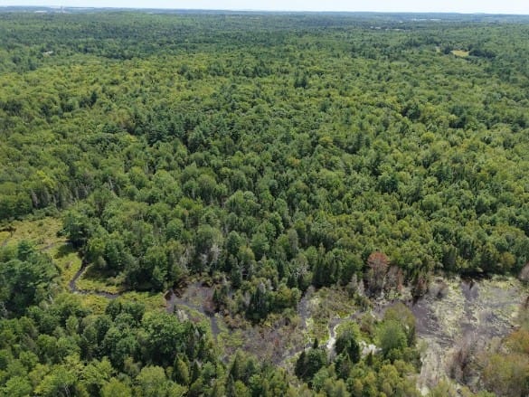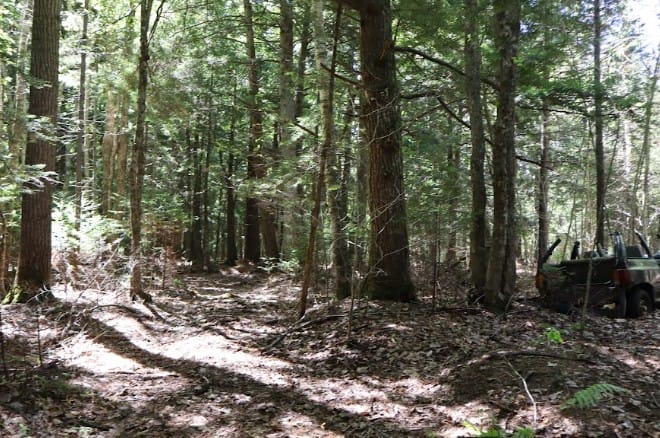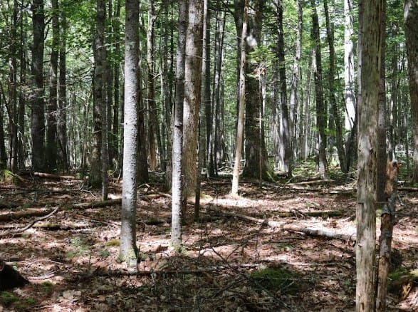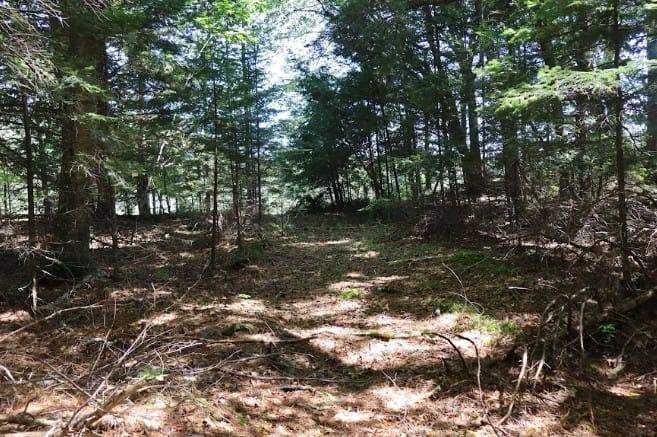 Expect quiet mornings, the sound of the brook in the distance, and deer wandering through at dusk. The old logging road makes exploring easy, and the higher back section gives you that “on top of the world” feeling.
