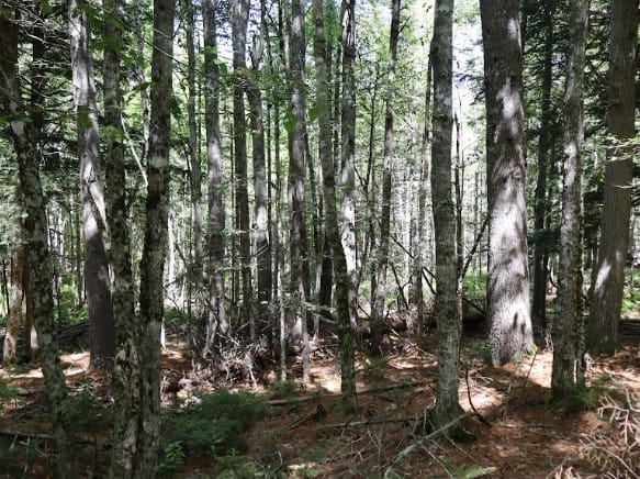 It’s not just the size, but it’s the feel. The land is mostly dry and quiet, with mature pine and hardwood trees that give it that true Maine vibe. There’s an old logging road on the left side for easy access, and higher ground at the back that’s perfect for building.